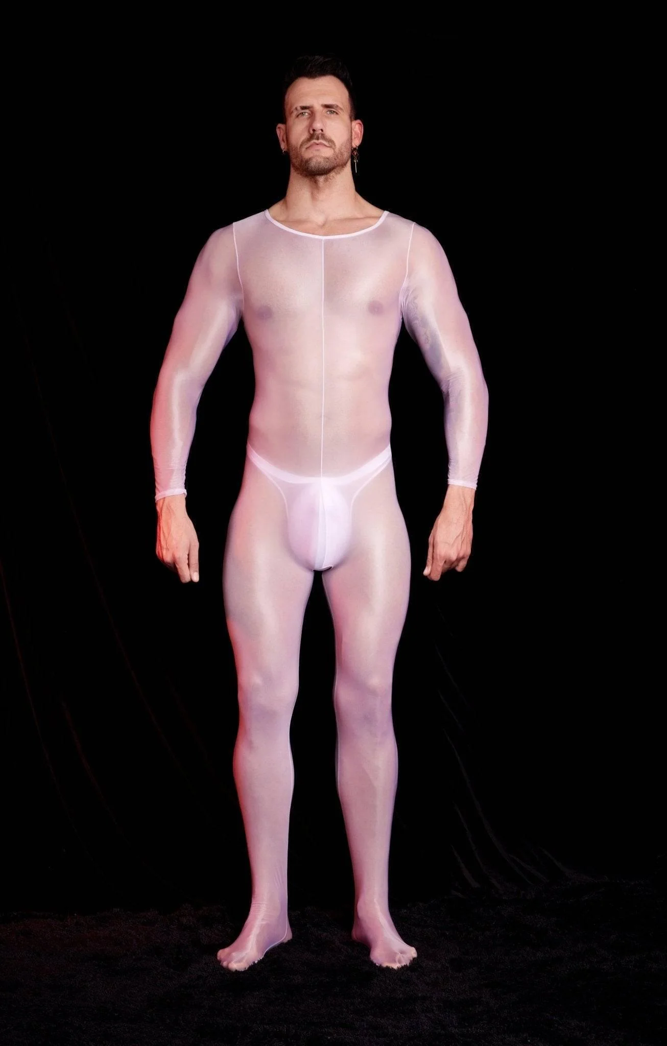 Elevate your wardrobe with this male sheer bodysuit and enjoy the perfect balance of seductive style and comfort. Whether you're going for the daring design of a men's leotard or the sleek allure of a men's full bodysuit, this piece guarantees a stunning and unforgettable appearance.